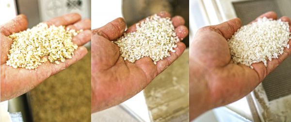 Обработка ядра различается. Шлифованный рис – это когда с зерна удаляется лузга (верхняя непищевая оболочка) а после зерно шлифуется до белого цвета с удалением всех плёнок. Слабошлифованный – шлифовка щадящая, с частичным удалением алейронового слоя. Более полезный вариант. Нешлифованный рис теряет только лузгу, в нём наибольшее содержание минералов и витаминов.