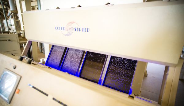 Очистка рисового зерна производится в несколько этапов, начиная от подработки сырца сразу после приёмки. Далее сушка и очистка. Фотосеператор «видит» брак и выдувает его из общего потока направленной струёй воздуха. То есть в буквальном смысле он разглядывает каждую рисинку. Наша Золушка.