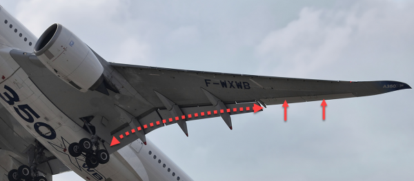 Когда закрылки полностью убраны [как на первой картинке], то эти качалки находятся в таком положении, что "выпирают из крыла".