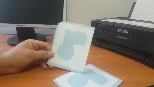 Вырезал макеты при помощи режущего плоттера. Для резки контура обработки используется обрезок любой светлой пленки. А для наклейки на лицевую часть будет использоваться декоративная пленка похожая на царапанное серебро.