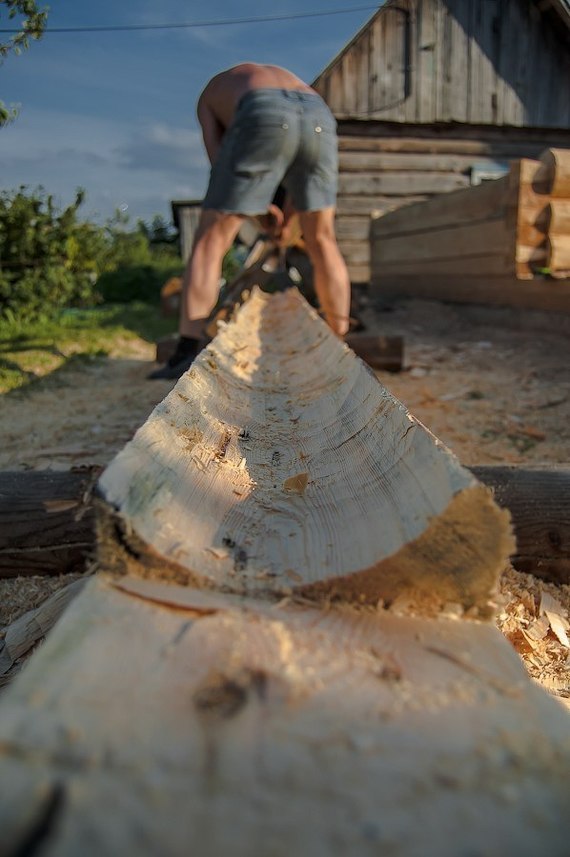 Баня наша - старушка (на фотках будет иногда попадаться на заднем фоне) совсем плохая стала и было принято решение не пришивать ничего старой кобыле, а запилить все с нуля! Сказано - сделано. Ну и начали… Заготовили лес и сушили его примерно 5 месяцев. Баня планировалась 6х3 из двух частей, сруб(парилка и помывочная) и каркас(зона отдыха).