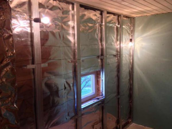 Затягиваем фольгой, устанавливаем профили, и зашиваем влагостойким гипроком.
