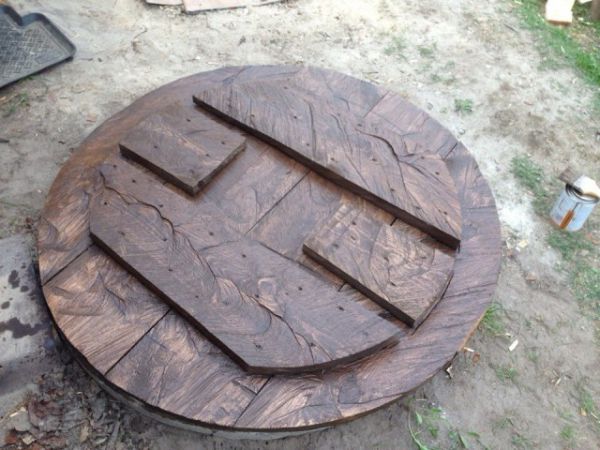 Крышка люка для воды, слив из бани. Колодец из одного метрового кольца.