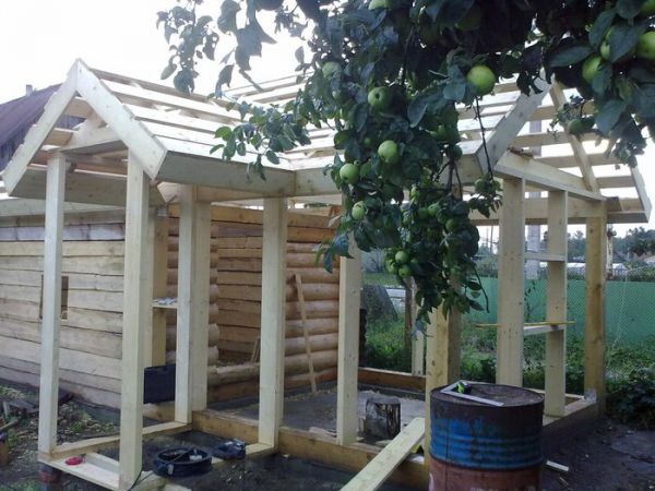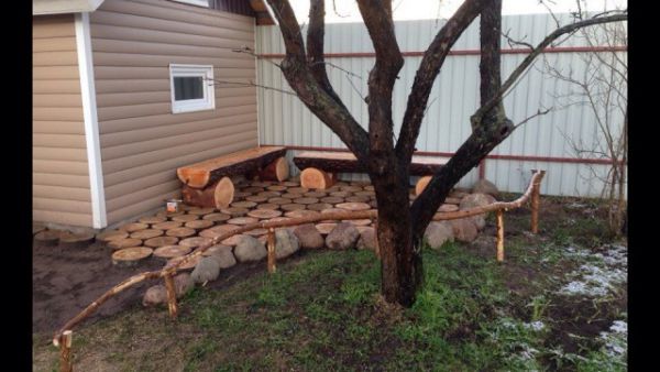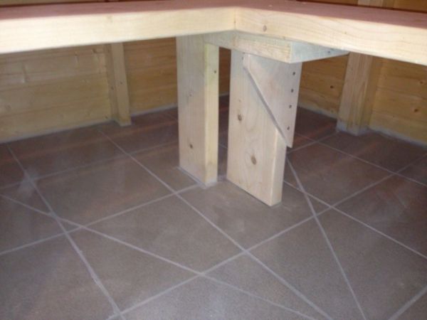 В зоне отдыха пол застелили лиственницей, а из остатков сделали дверь.