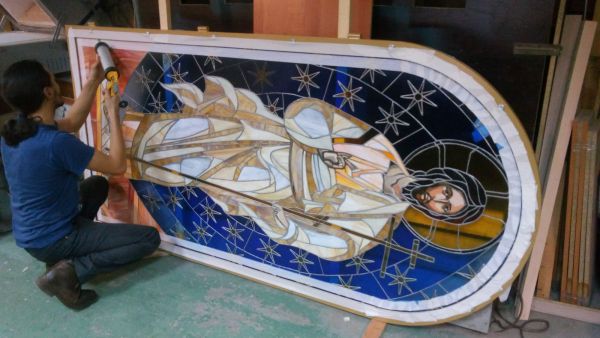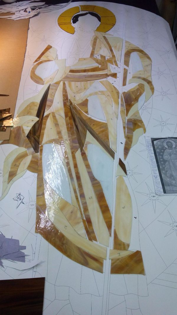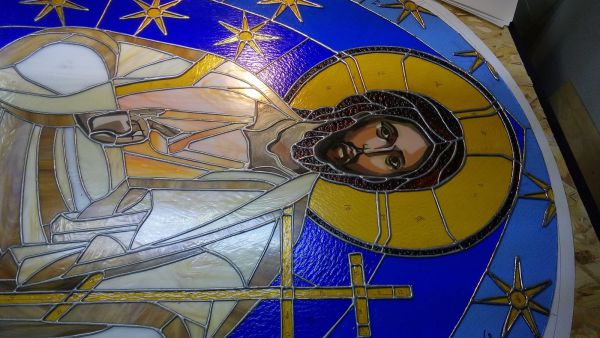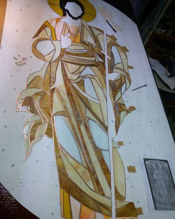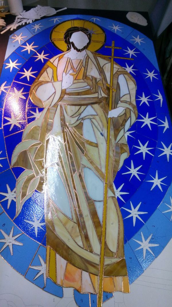 Так вот, решила я создать свою витражную мастерскую..И так уж вышло, что на базе института где я училась! Совпадение? Не думаю. И вот он, долгожданный первый заказ! Но не в загородный дом, а в Храм.