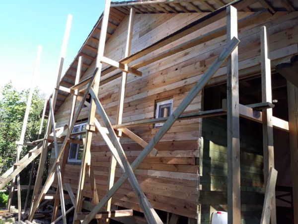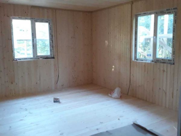 Начинаем внутреннюю обшивку стен вагонкой, класс А-В. Довольно бюджетно, и выглядит нормально.