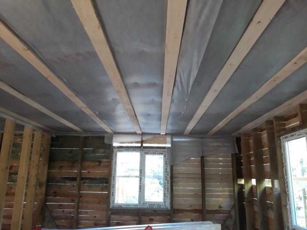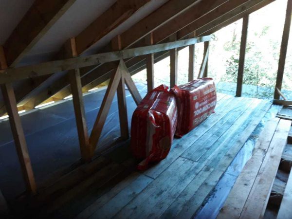 Каркас для надежности решено было обшить доской. Пароизоляция изоспан, утеплитель роквул лайк баттс скандик 150 мм в шахматном порядке ( 100 и 50), именно шахматный порядок укладки базальтового пильного утеплителя позволяет добиться отсутствия холодных мест.