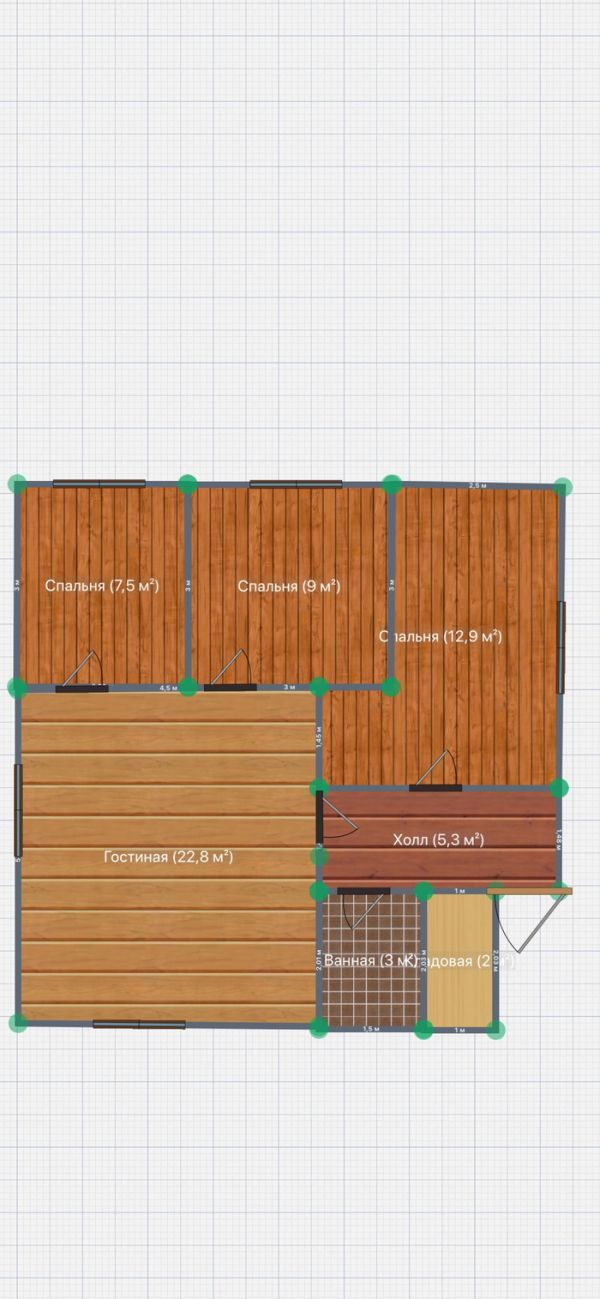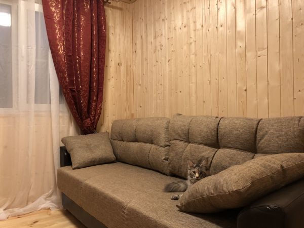 Пол покрыт яхтным лаком, проводка в кабель-каналах, кошка на диване ) Проект дома ниже( проект был сделан в какой-то корявой бесплатной проге, с нарушением размеров) сам дом 8,5 х 8,5 м. Высота потолков 2,55, второй этаж ( пока чердак- 1,9) три спальни , кухня-гостиная, прихожая и санузел. Метраж виден на плане.