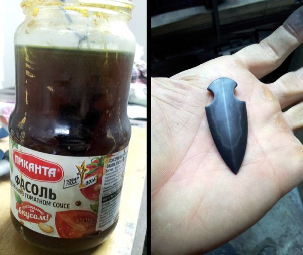 Самая интересная во всем этом часть - посмотреть, как получился хамон (на самом деле это видно при полировке на низких гритностях, но я, как обычно, был с разряженным телефоном). Для этого детальку надо промариновать в консервированной фасоли (Хлорное железо)!