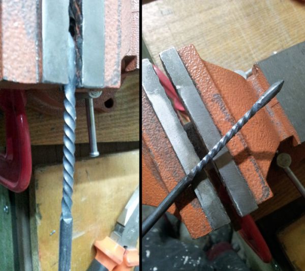После обстукивания еще раз нагреваем и немного раскручиваем изначальную спираль обратно. Сколько раскручивать, опять же, каждый выбирает сам. Здесь, примерно пол-оборота: