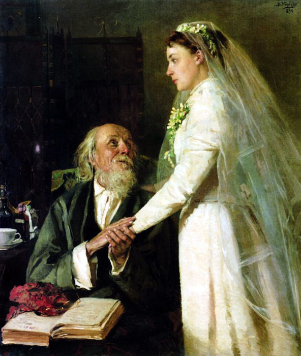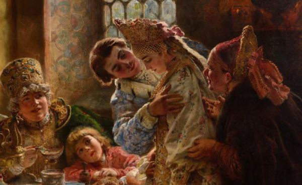 Юные девушки торопились выйти замуж, чтобы не остаться старой девой. Художник К. Маковский. К венцу./Фото: smallbay.ru