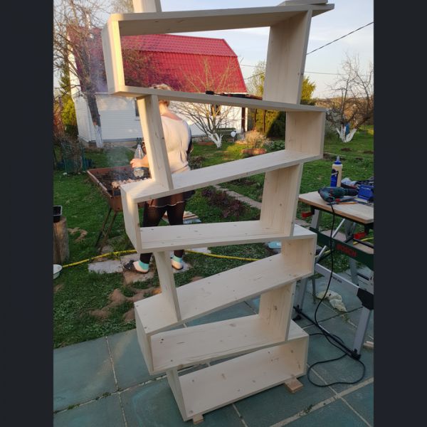После ремонта в квартире образовалась ниша, в которую решено было поставить книжную полку. Полку хотелось красивую и необычную, поиски по магазинам желанного результата не дали, зато где-то на просторах гугл-картинок был найден концепт. Сей концепт купить естественно было нельзя.