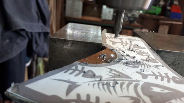 Рукоядь обжог, сделал выемки под пальцы, зафаршировал потом 5 слоёв лака, металл шлифанул и полирнул