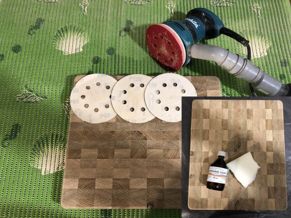 Отшлифовал сначала зерном 80 затем 120 и 180. Пропитывать буду вазелиновым маслом.