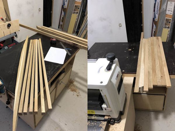 Снова рейсмусовый станок и нарезка на отдельные планки.