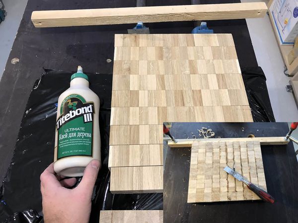 Склеиваю планки в щит. Удаляю выступивший клей с помощью "специальной" стамески.