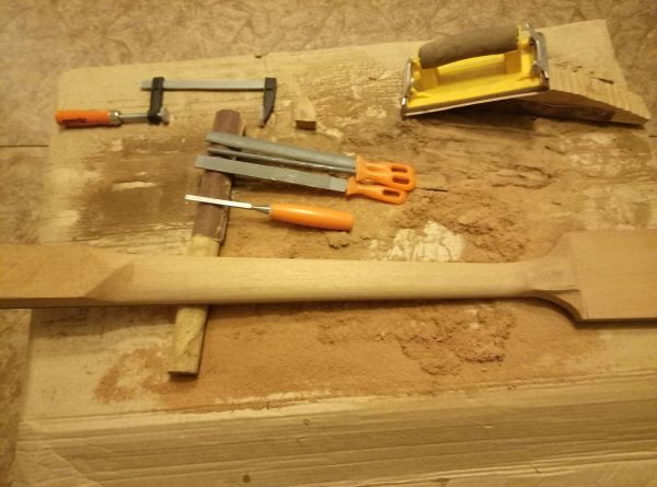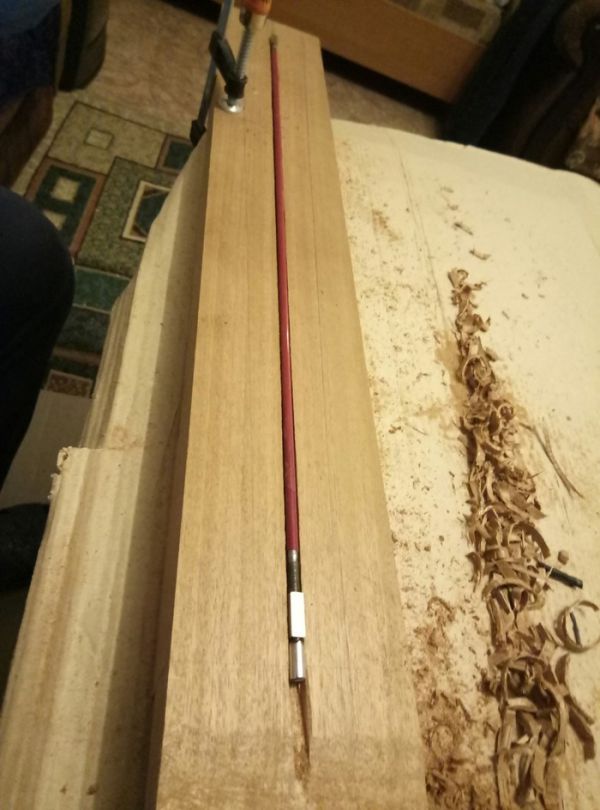 Придаю грифу D-образную форму по своему вкусу, в месте перехода в голову оставляю утолщение, у гибсонов болезнь по отвалу башки, да и гриф у меня из одного целого куска радиального распила.