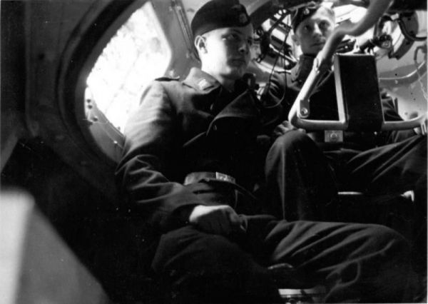 "Заряжающий смотрит через открытую амбразуру в лобовой части башни"