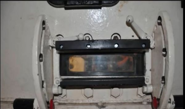 "Вид на люк наводчика, который запирался люком с прибором наведения в нем. После введения башенных экранов от него отказались"