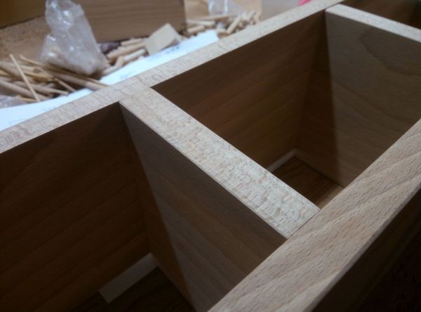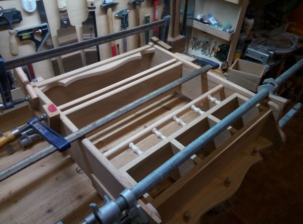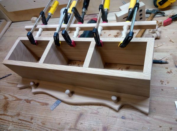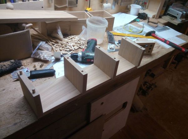 Начинаем с нижнего органайзера :) Все собирается на шканты и клей с помощью самодельного кондуктора.