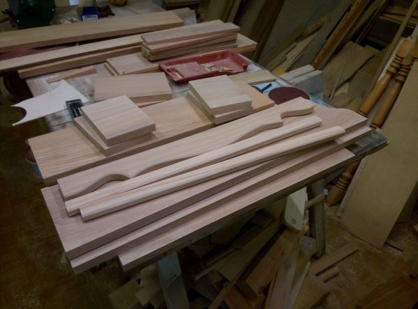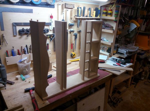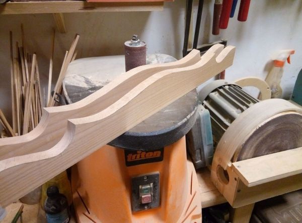 У полки есть парочка криволинейных деталей, они распилены на ленточной пиле и отшлифованы.