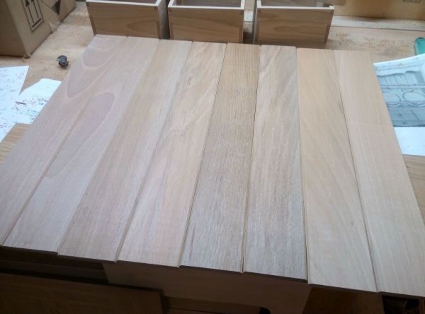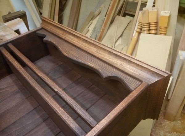Боковые стенки сделаны их широких досок, мой станок такие распилить не может. Пришлось поработать ручками. :) Можно было склеить из половинок, но поверьте, вид сразу будет не тот.