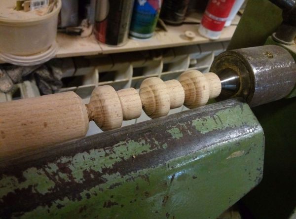 Имеется большое количество токарных деталей - 5 балясинок, 3 ручки и 3 крючка. Все это выточено на станке, чтобы было ощущение предмета, сделанного руками. Иногда смешно наблюдать на типа ручной мебели ручку из Леруа :).