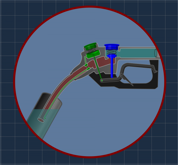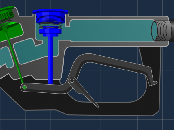 Пары бензина взрывоопасны, и в заливной горловине автомобиля их концентрация максимальна. Использовать в этой среде электрический датчик было бы недальновидно, поэтому предохранитель заправочного пистолета работает на чистой механике.
