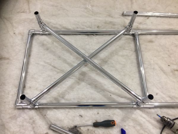 А вот все вместе, усилил крест-накрест трубами. Снизу постелил тряпку чтоб не царапать хром