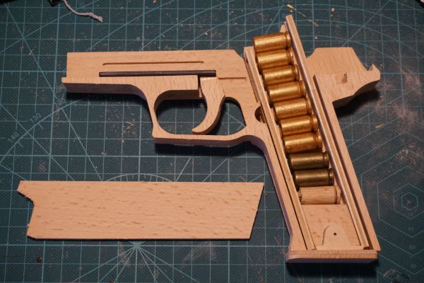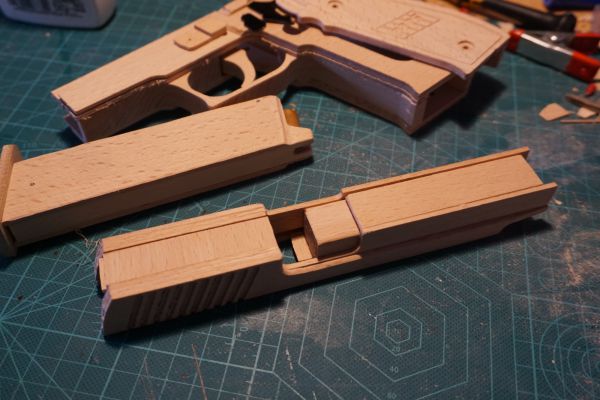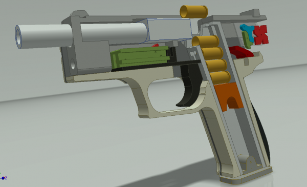 Механизм для стрельбы резинками можно удалить и поставить на его место курок. Получится ствол для косплэйеров.