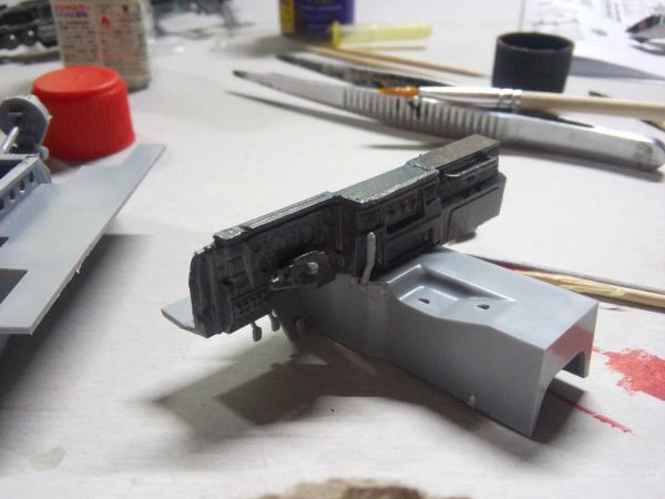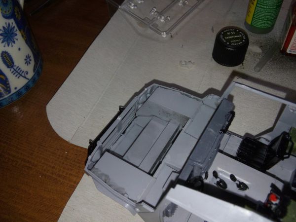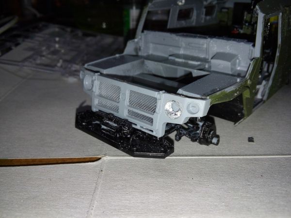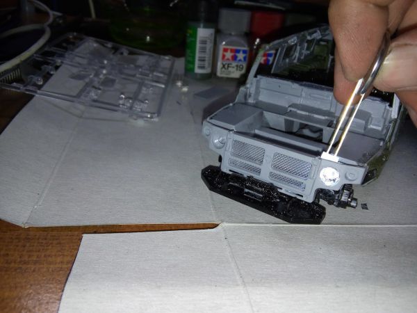 Здесь фартук готов к приклеиванию, всё ненужное уже убрано напильничком. Чтобы фары смотрелись интереснее, обклеил чашу изнутри обычной фольгой. Тут нужно добавить - я использовал супер-момент, на звездовском клею держаться не будет.
