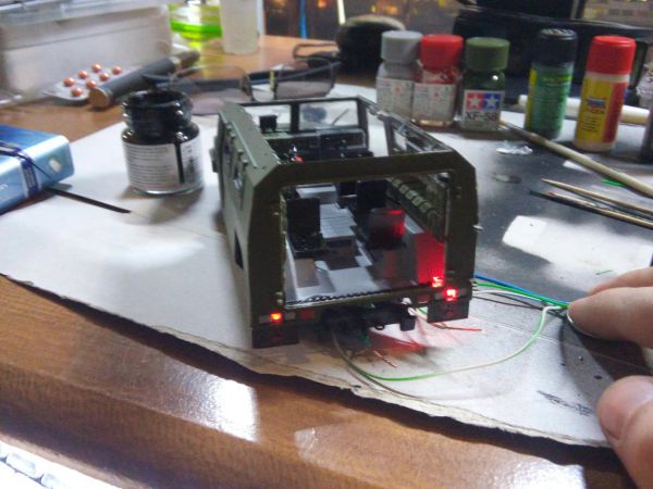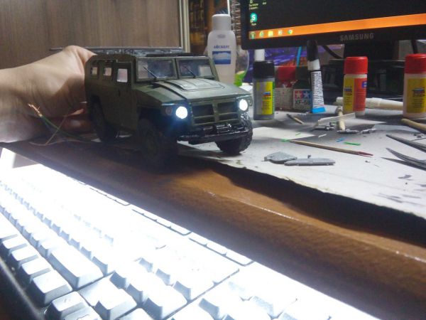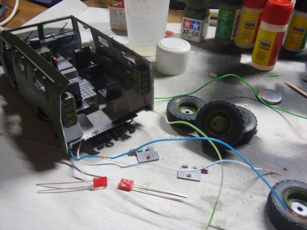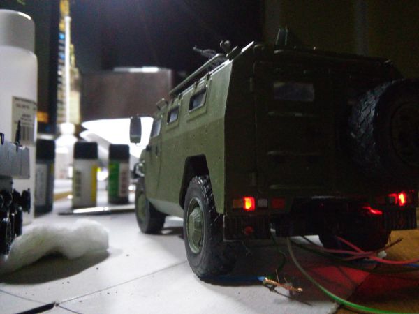 Задние фонари. Диоды светят красным, но они прозрачные. Естественно нужно их окрасить. место под самми диоды вырезаны в брызговиках/фонарях