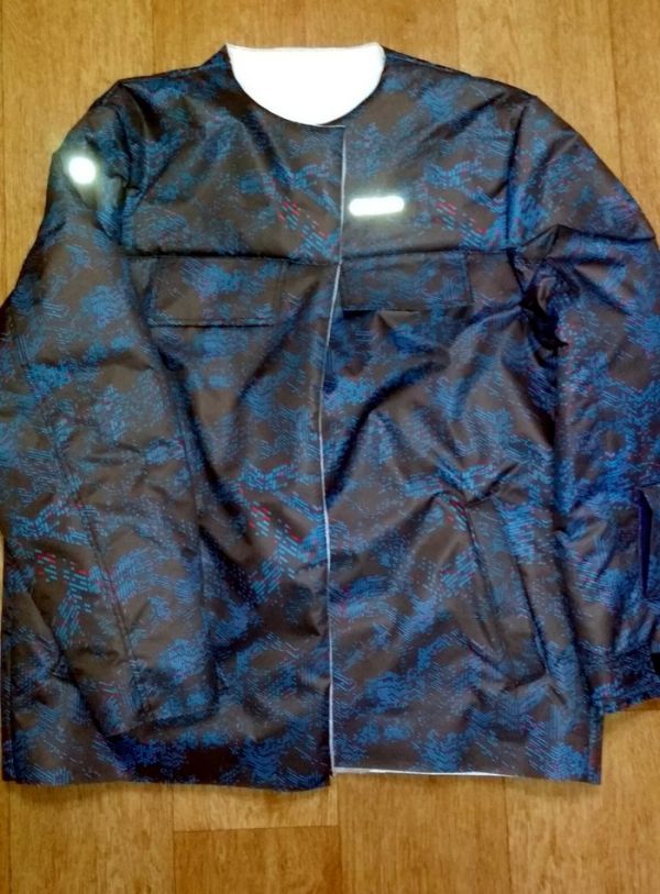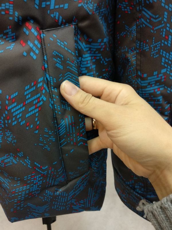 При примерке оказалось, что я слегка промахнулась с размером и куртка оказалась немного тесна. Пришлось извернуться и немного расширить куртку за счет вставок в районе молнии. Но т.к. там стоит широкая ветрозащитная планка, то их не видно. Но когда я шью дистанционно на заказ, то я перед раскроем выкройку и детали 10 раз перемеряю и не допускаю таких ошибок.