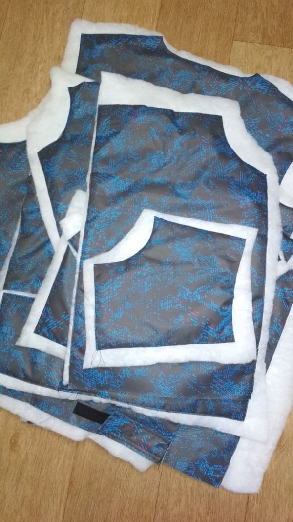 Теперь шьём рукава, детали спинки и полочки, чтобы потом пришить к ним утеплитель. Так карманы получатся теплые. На своей зеленой куртке из предыдущего поста, я пришивала утеплитель к подкладке, и по этому мои внешние карманы спереди получилась совсем не теплые. Руки в них не согреешь.