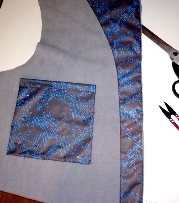 Теперь начинаем делать карманы. Карманы. И еще раз карманы. Всего 7 штук-2 внутренних, 2 сверху на груди с клапанами на кнопка, 2 прорезных внизу для рук и 1 в рукаве.