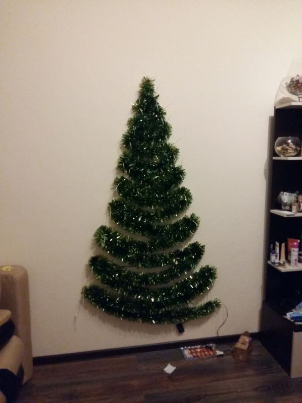 Уже на гирлянду теми же стяжками закрепил пышную зеленую мишуру.