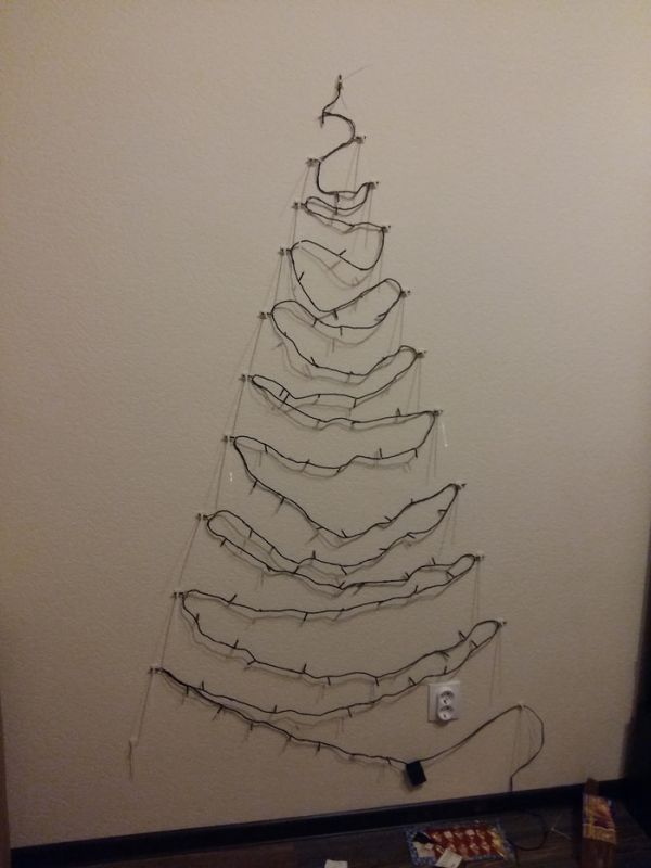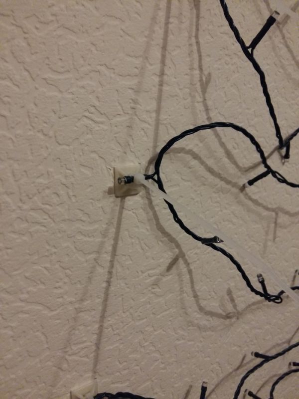 С помощью стяжек к площадкам прикрепил гирлянду (скелет елки).