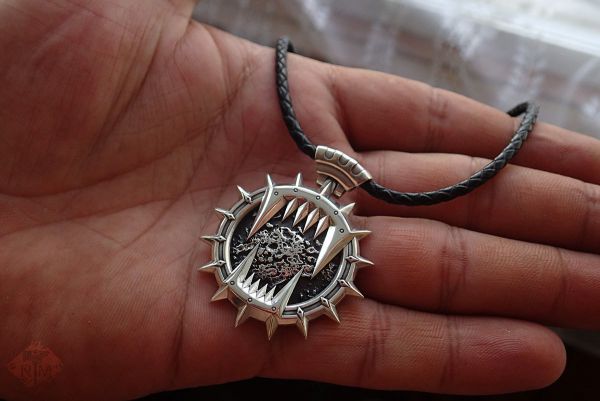 Для удобства ношения, с учетом всех выступающих шипов, сам кулон и не большой, и не маленький. Всего 4см )) и весом 24гр. Вполне достаточный размер до добычи крови))