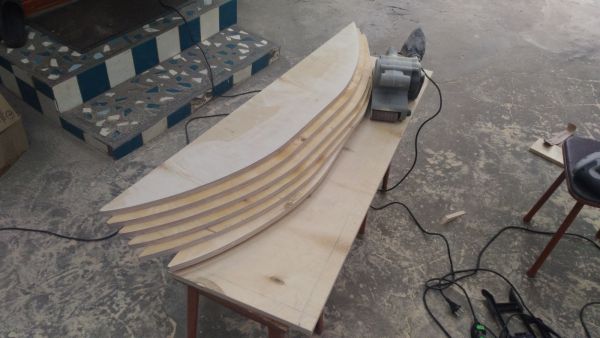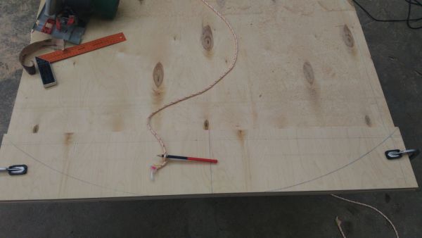 Ну и распускаем лист фанеры на полосы нужной нам ширины. Потом рисуем полусферу, вместо циркуля использовал веревку и карандаш
