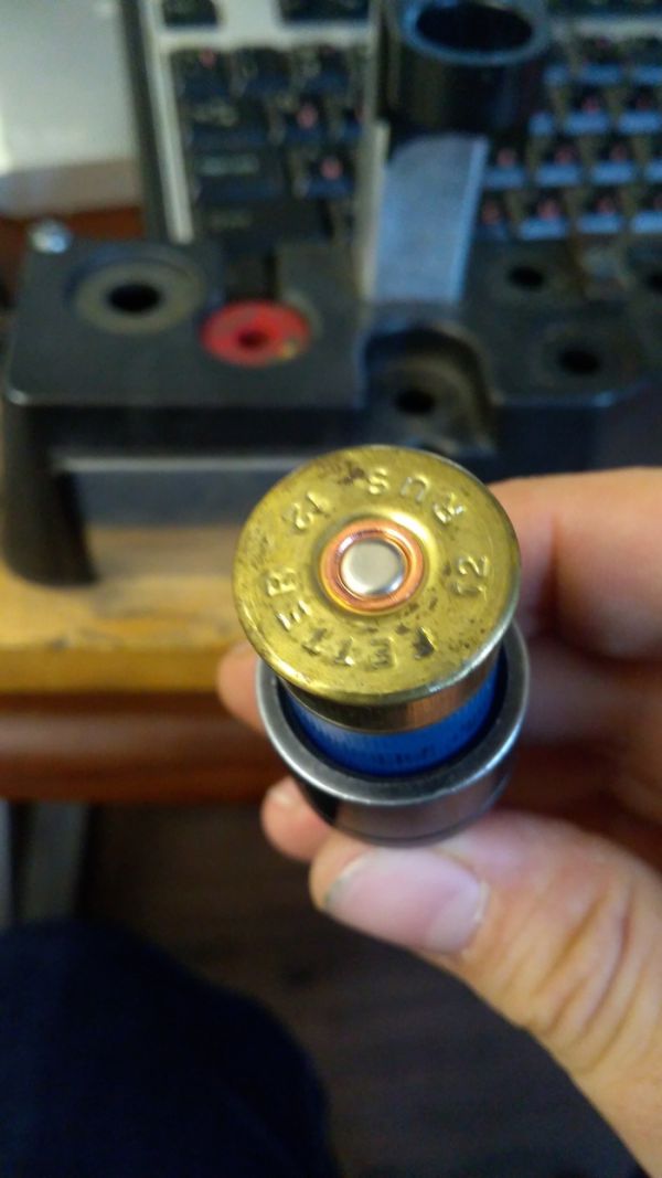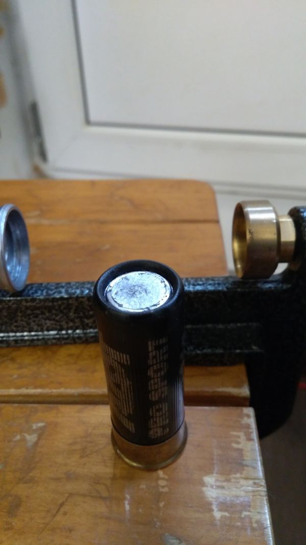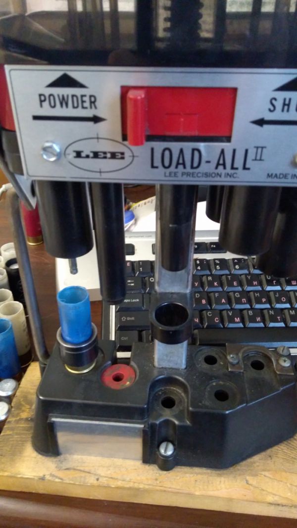 Потом на станке lee load all2 обжимаем металлическую юбку гильзы, выбиваем старый капсюль и устанавливаем новый. Станок позволяет закрывать гильзу звездой, но пулевые патроны мне больше нравится закручивать.