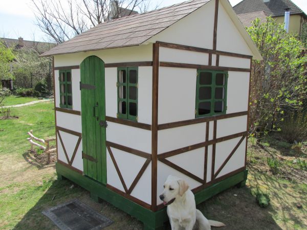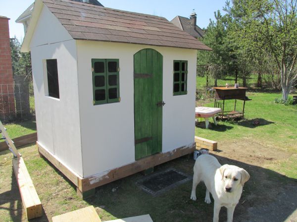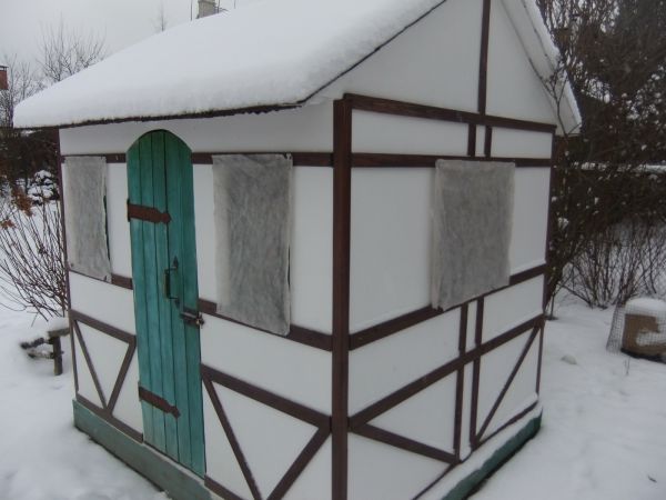 Домик стоит и прекрасно себя чувствует. Только в сентябре снял декор и покрасил. Но не потому, что там что-то начало портиться. Он просто испачкался от игр детей и собак.