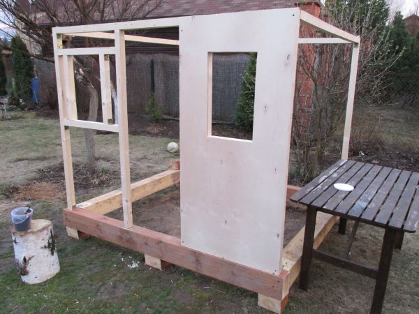 Ну и порывшись в сарае, вытащил оттуда все оставшиеся там деревяшки начал строить. Без чертежей, без особого плана. Дизайн вызревал в процессе строительства.