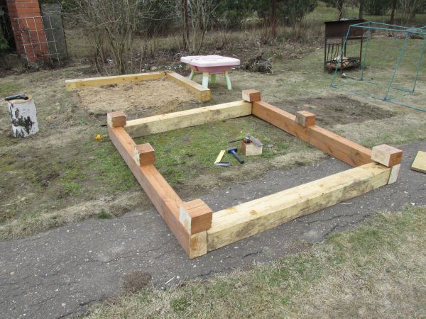 Но воспоминания об этих сказочных хоромах по цене полноценной дачи меня не оставляли. И вот когда дочка подросла настолько, что можно было демонтировать её песочницу, я понял, что брус от этой песочницы идеально подойдет для основы домика мечты.