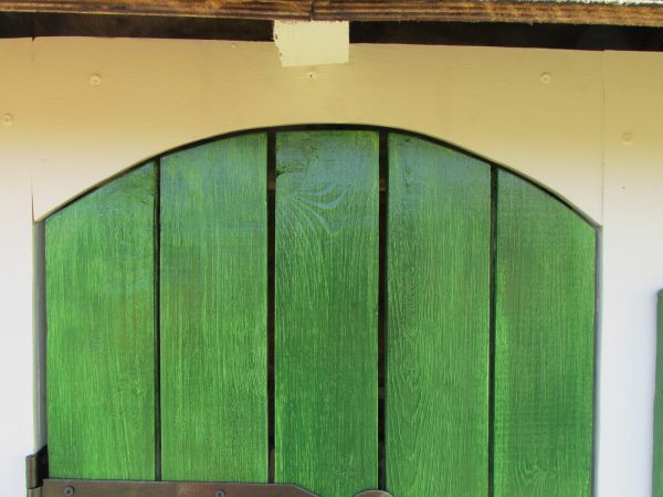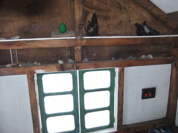Тут очень помог стиль "Фахверк". Покрытые морилкой планки закрыли косяки и придали домику некую сказочность.