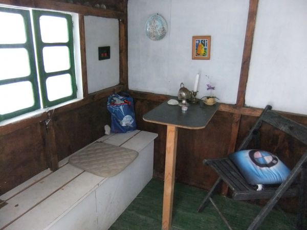 Но бруски, планки, металлические уголки у меня были. Катепал для крыши отдал сосед. Обрезки струганых досок для пола отдал другой сосед. Они с интересом наблюдали под пиво за моими упражнениями.