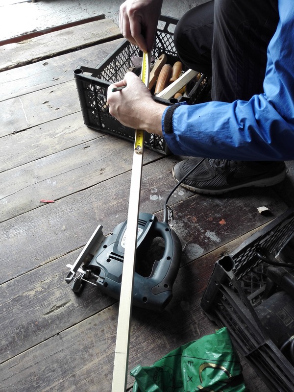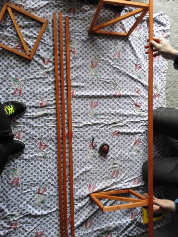 В процессе стало понятно, что не хватает поперечных перекладин, ибо на что мы потом собирались вешать лампочки.