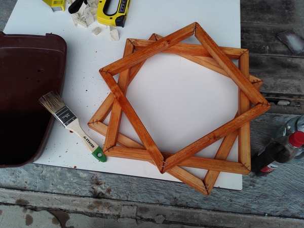 Скрепляем степлером 3 квадратика, и морим морилкой 2 раза все получившиеся детали :)