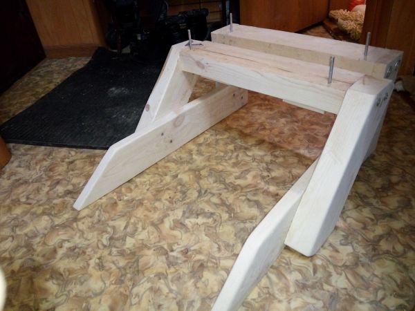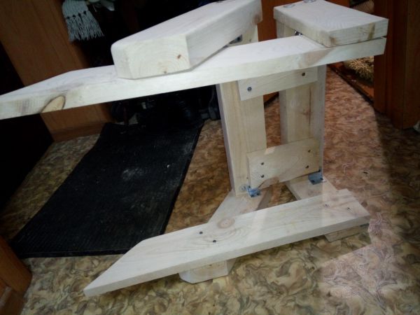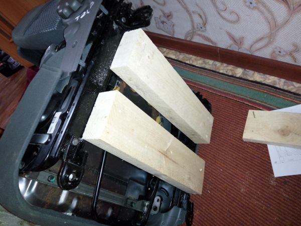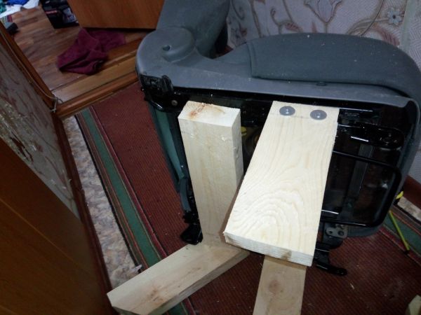Салазки решил не снимать. Да и не получилось бы :) Периодически прикидывал подставку к креслу: