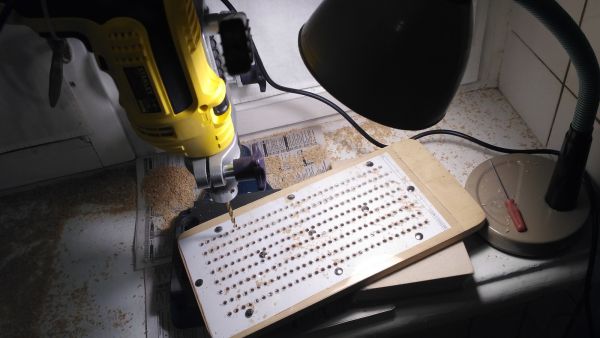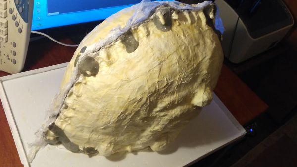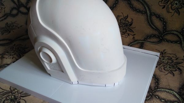 Далее делался визор – и это было настоящее мучение. Для этого шлема визор делается методом вакуумной термоформовки. К счастью у меня после того, как я делал ещё первый шлем (к стати тоже это был шлем Guy-Manuel’а) остался «девайс» для этого процесса. Сама болванка, по верх которой выполняется формовка прозрачного ПВХ листа, выливалась из пластика.