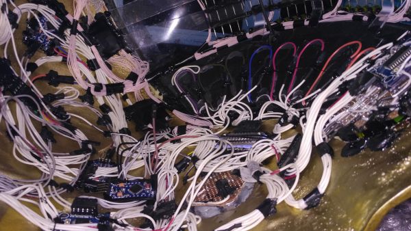 Когда уже визор и модель были готовы пошел процесс подготовки электроники для шлема. К примеру, модуль «радуги», мне отдельно смоделировал мой знакомый, а другой напечатал. Внутри «радуги» впаяна led лента. Управляется она ардуиной. Но т.к. ардуина это не силовой девайс и на выход она может подать только 5В, а ленте надо 12В, то пришлось делать силовой модуль на мосфет транзисторах, который по сигналу из ардуины подает питание в 12В на нужный элемент «радуги». Сами же 12В получаются из power bank через dc/dc преобразователь. Да для питания «радуги» я выделил отдельный power bank. Вся остальная электроника, кроме вентиляции, питается от второго power bank. Вентиляцию я сделал автономной и состоит она из 2-х кулеров размером 40х40 мм, преобразователя питания на 12В, 3-х Li-Ion аккумуляторов и USB зарядного устройства для них))))